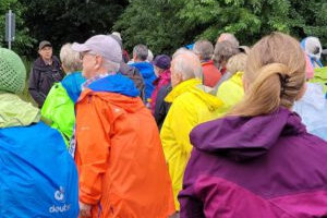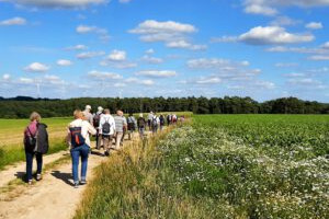 Bei der Eröffnungswanderung gab es auch Kaffee und Kuchen - die Wandergruppe auf dem Weg zum Hofcafe Tschritter in Klein Nindorf.
